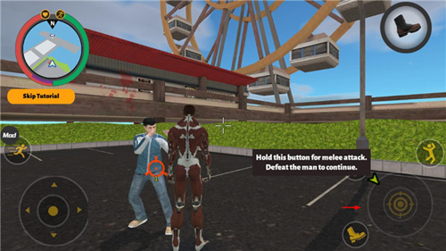 3、在近战攻击时按住右下方按钮,并打败男人继续。