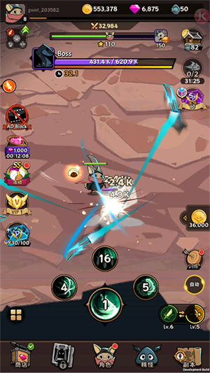 3、轻松放置,减负畅玩、24小时自动冒险,实现收菜式轻松成长。