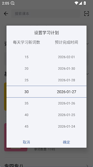 3、设置每天学习新词数,点击确定就可以开始学习了