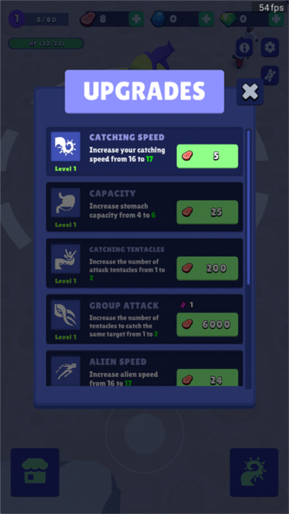 4、吞噬粒子、吞噬场景粒子积累体积能量,实现生命形态进化升级。