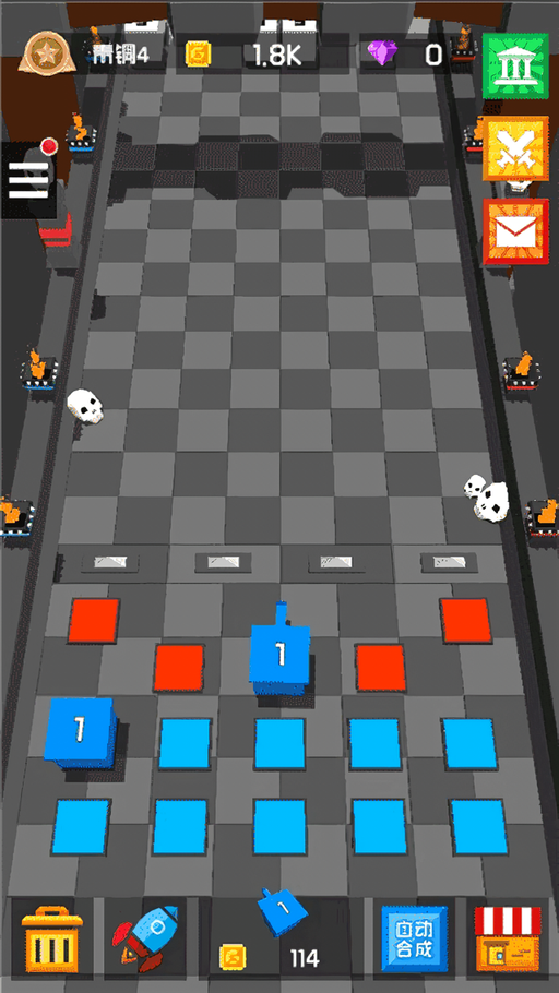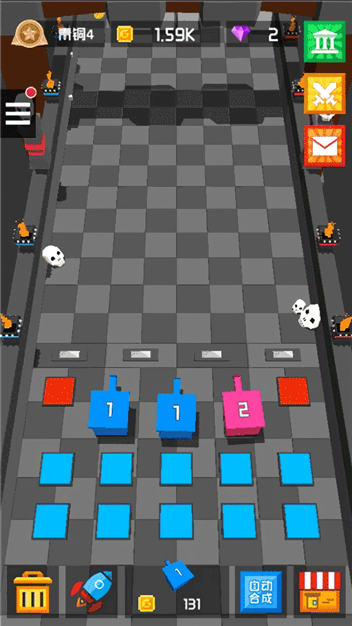 通过合并相同等级的方块炮塔,可快速获得更高级别的防御单位,实现火力质的飞跃。