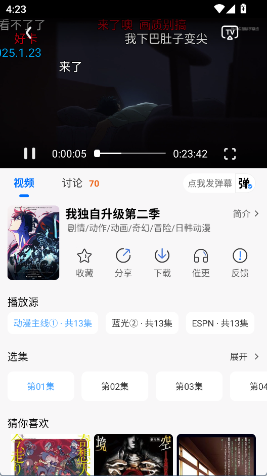 通过弹幕或讨论区与其他爱好者互动,分享观后感或推荐作品,适用于动漫话题活跃的社交场景。