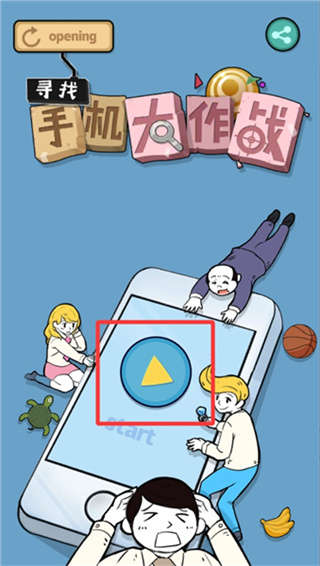 1、进入游戏界面后点击中间播放键、正式开启找手机之旅。