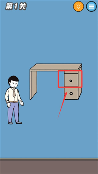 第1关、手机藏在面前桌子抽屉里,打开点击即可过关。