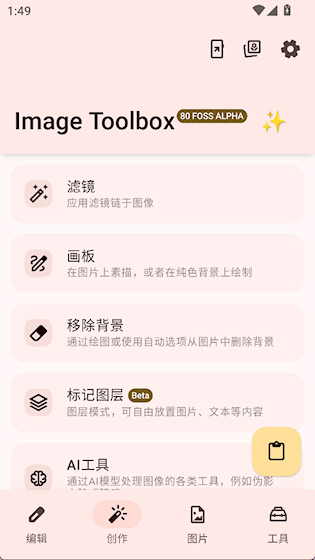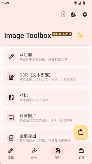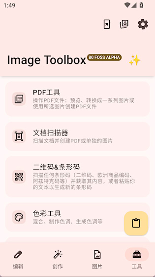 Image Toolbox是一款开源免费图片处理工具,集编辑、创作与实用功能于一体,堪称移动端的全能图像工作站,内置大量专业级图像处理选项,涵盖滤镜应用、格式转换、背景移除等,带来无广告、无内购的纯净体验。
