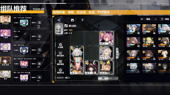 双盾反击队的核心在于阿瑞斯的反击机制,阿尔卑斯可以防御转输出,再加上卡提那的多动,琶音提供护盾防护,最后补一个奶妈防止暴毙即可。这套阵容比较适合用于PVP设立防守方。