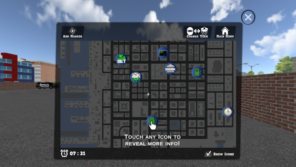 2、可选警察或强盗身份、两种身份对应不同玩法模式。