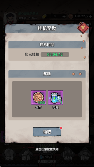 不要忘记领取离线挂机收益,系统会自动产出代币、电池等资源。挂机时间越长,奖励越丰厚,点击【领取】即可获取,不影响正常在线操作。