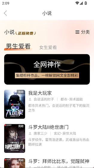 1、点击导航栏的小说按钮