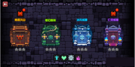 1、秘境副本是获取装备的核心途径,共分四类地图——地底火山(火)、奇幻森林(木)、冰风城寨(水)和亡灵城堡(混合属性),使用对应属性克制的武器可大幅提升效率。副本层数随玩家冒险等级提升逐步解锁。
