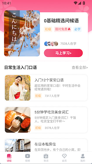 2、课程界面提供日常生活口语