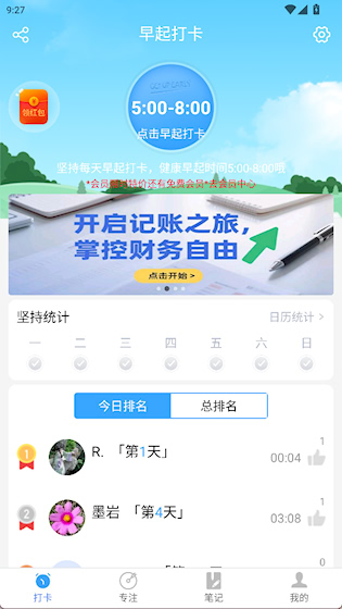 根据实际起床时间生成排名榜单,越早起床名次越高,营造良性竞争环境,有效提升早起积极性与持续性。