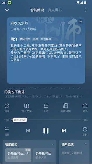 支持在阅读与听书之间自由转换,适应通勤、家务等多场景需求。