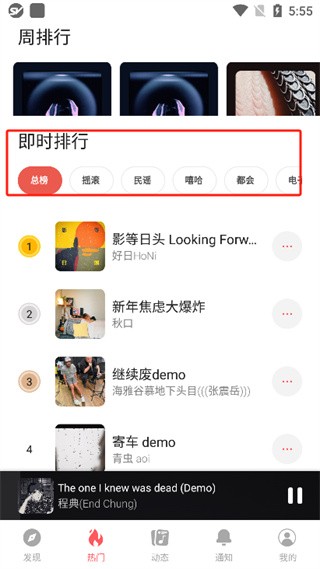 6、即时热门排行:24小时不间断更新榜单,掌握独立音乐潮流动态;