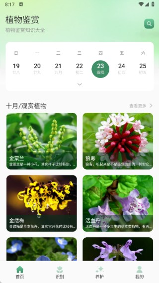 1、打开软件首页,浏览平台推荐的各类植物内容,快速了解基础信息。