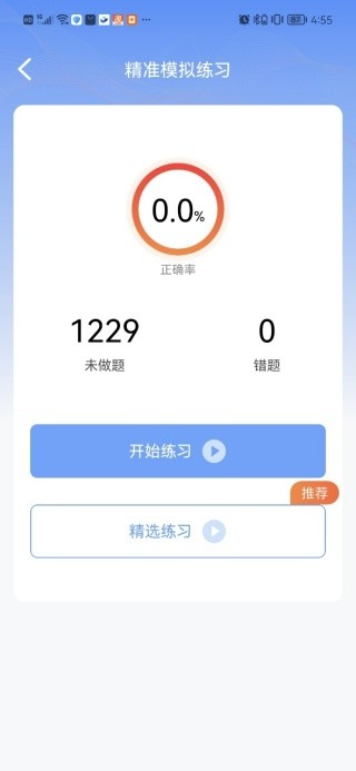 3、在精准模拟练习页面,点击“开始练习”刷题,也可选择精选练习模块。