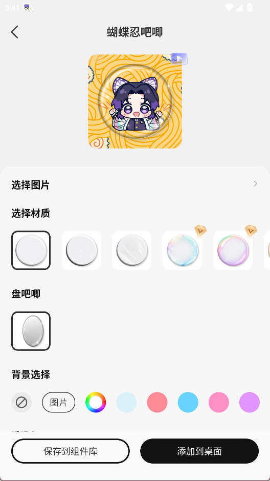 2、可以选择组件的材质、背景、透明度等