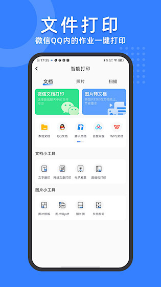 支持从微信、QQ等社交软件中直接选取作业或试卷进行打印,无需额外传输步骤,简化家庭打印流程。