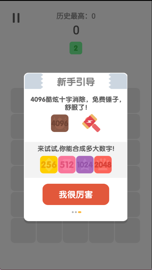 《2048消除烦恼》是一款休闲益智手游,结合数字合成与俄罗斯方块下落玩法,带来简约清新的画风和轻松解压的体验,通过点击控制方块落点,使相同数字自动合并,逐步挑战更高数值,有十字消除特效和免费道具系统,大大提升了节奏感与可玩性。