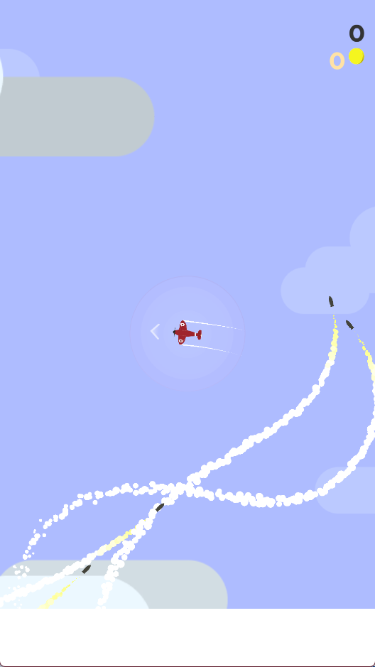1、拖动屏幕移动飞机,通过不断转向来躲避飞弹