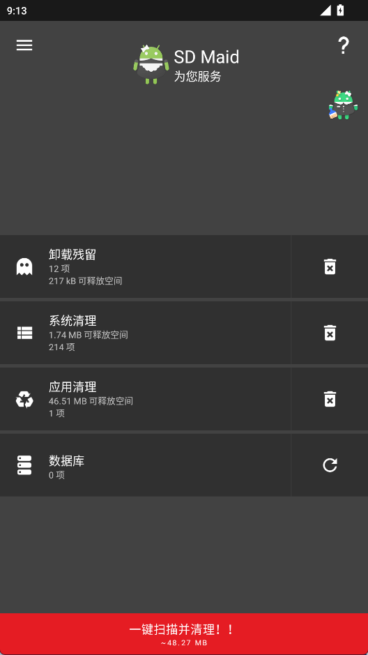 SD Maid是一款文件管理工具,能识别并清除系统垃圾、应用残留、重复文件等冗余内容,释放存储空间、提升设备运行效率。功能覆盖从基础缓存清理到高级数据库优化,支持自定义规则与定时任务,满足不同精细化管理需求。