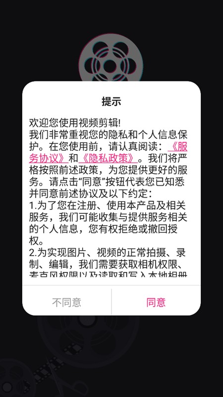 1、下载安装视频剪辑精灵APP并打开,阅读协议后选择是否同意。