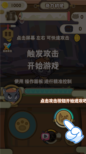 3、点击屏幕左右可快速攻击,使用操作面板进行精准控制,点击攻击按钮开始进攻。