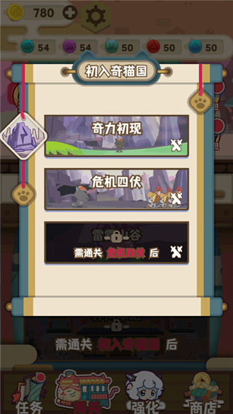 7、最后,当完成第一个关卡后,才能解锁后续关卡。