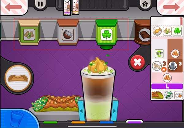 2、制作过程中,咖啡、牛奶及配料必须精准对准中心添加!严格按照订单顺序摆放,若底部有其他小料则优先放置。控制左侧进度条保持在绿色区间,避免失误扣分。