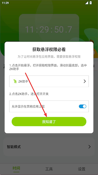 可在任意应用界面上层显示当前时间,无需切换回主界面即可掌握精确时刻,提升操作效率。