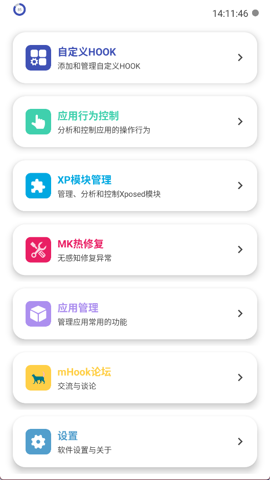 mHook管理器是一款安卓系统工具,专为高级用户、开发者及技术爱好者设计,能够深入分析和动态修改应用程序行为,实现对系统级操作的精细控制,在系统优化、隐私保护和安全研究方面表现出色,是深度定制与调试的实用工具。