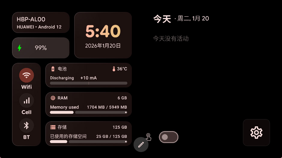 内置丰富信息模块,包括时钟、天气、日历、电池电量等,用户可自由添加、删除或调整布局,满足个性化需求。