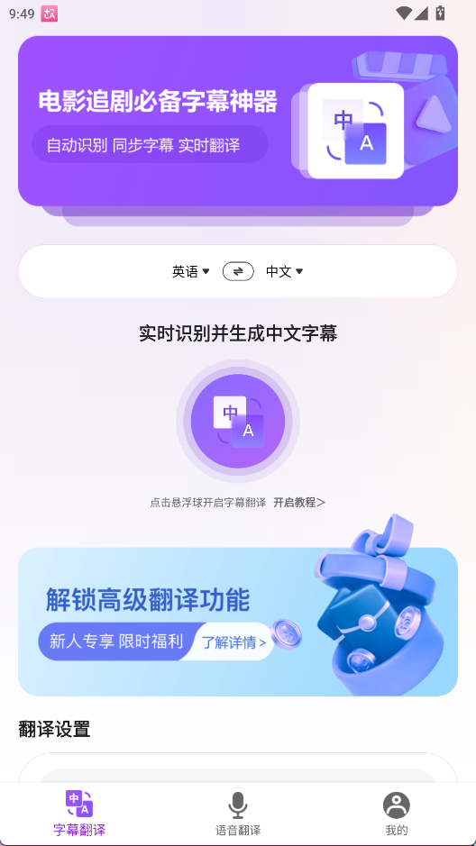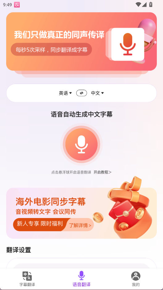 2、可以通过悬浮球识别语音翻译成中文字幕