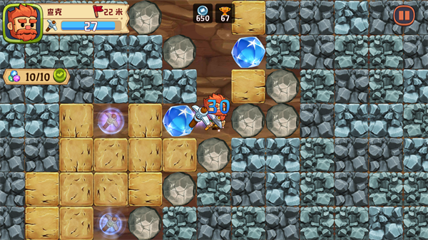 1. 向下挖掘:操控矿工在限定步数内不断向下挖掘,收集金币、钻石及隐藏宝藏。