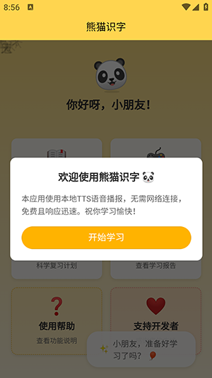 4、进入选中模块后,即可开始系统的识字学习流程。