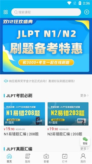 1、进入纳豆题库首页,可见海量真题与配套课程资源。