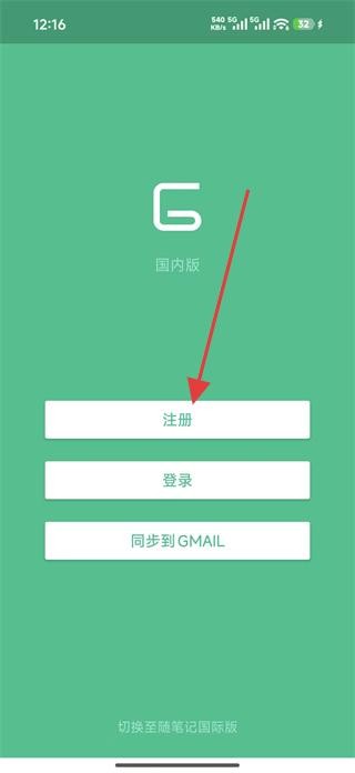 1、打开随笔记GNotes进入初始页面,可见注册登录选项,点击注册进入界面准备填写信息。