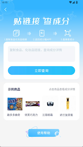 成分喵是一款食品与化妆品成分配料查询应用,帮助使用者快速识别日常消费品中的各类成分信息,通过扫码、拍照或粘贴商品链接等方式,实现对产品成分的解析,提供安全性评估与使用建议,是日常购物与健康管理的得力助手。