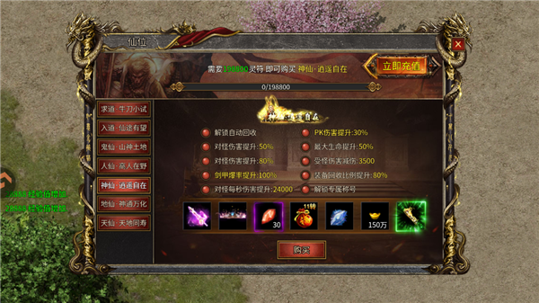 4、BOSS机制破解:打“玉帝BOSS”时,BOSS释放“天雷阵”前会有3秒红光预警,立刻用“腾云步”位移到安全区;释放“龙椅守护”时开“金刚咒”减伤,避免被秒。