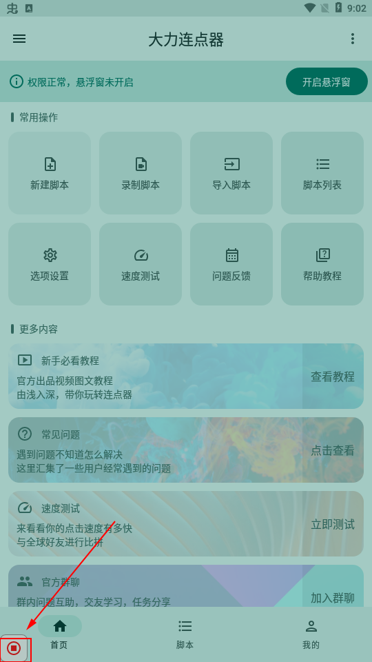 3、点击录制脚本之后,点击如下图所示的区域,开始录制,选择你想连点的屏幕区域。