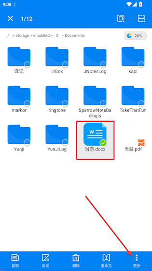 2、长按文件,点击右下角按钮