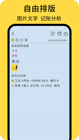支持图文混排形式撰写日记,文字可搭配多款字体,图片支持缩放、旋转等编辑操作,让每篇日记更具表现力和个性化风格。