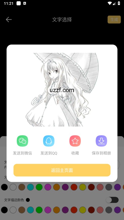 4、从本地相册选取一张照片导入编辑器,设置文字颜色与字体,点击右上角【生成】完成制作。