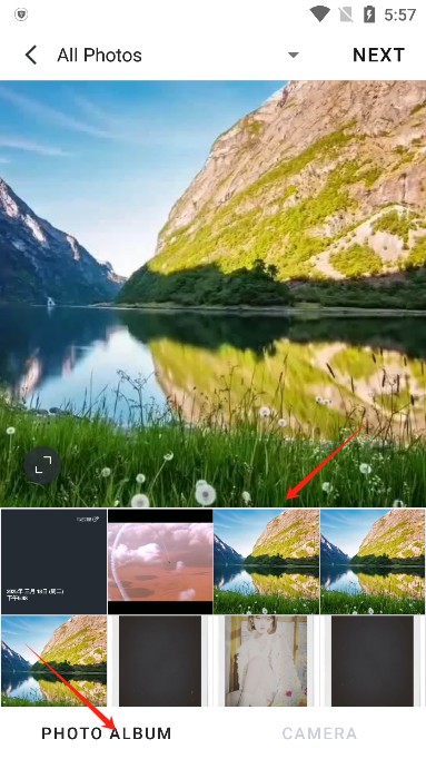 4、选定图片后点击右上角“next”,进入下一步操作;