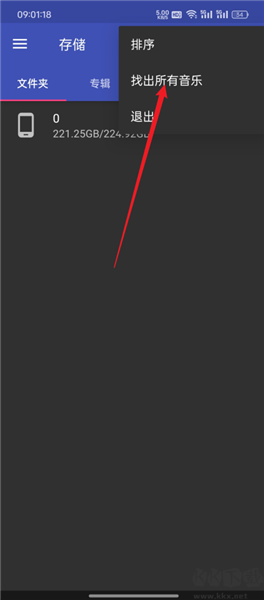 2、在菜单中选择“找出所有音乐”,找出设备中的全部歌曲。