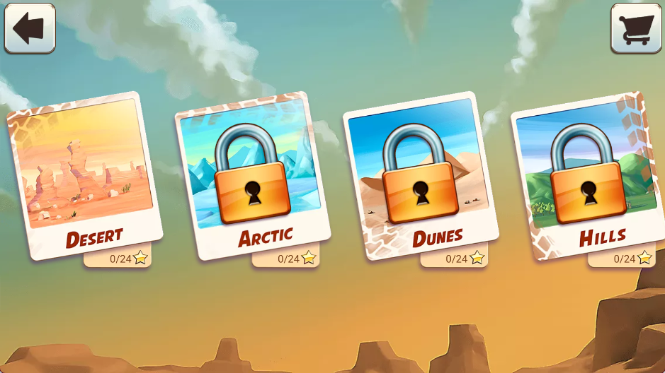 1、主题世界多样:游戏构建了多个风格迥异的主题场景,如沙漠、雪山、丛林等,每个世界拥有独特的视觉氛围与地形特征。