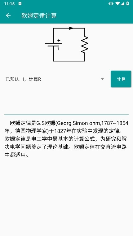 2、以欧姆定律计算为例,在对应计算页面输入数值点击计算即可。