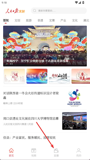 1、打开人民日报文创客户端,点击底部导航栏的直播