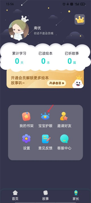 1、打开APP,用微信或账号登录,切换至【家长】模块,点击“宝宝护眼”图标;
