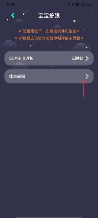 2、提供两种设置选项,点击休息间隔右侧的“>”进入调整界面;